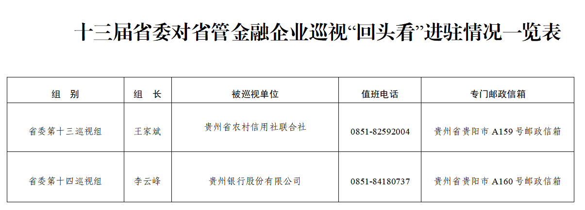根据省委关于巡视工作的统一部署,截至4月26日,十三届省委对省管金融企业巡视“回头看”完成进驻工作,2个省委巡视组将对2个省管金融企业党组织开展巡视“回头看”。