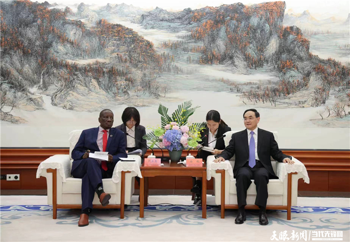 徐麟代表贵州省委、省政府向代表团一行表示欢迎,并简要介绍了贵州发展情况。他说,当前贵州正按照习近平主席为贵州描绘的美好蓝图,坚持以高水平对外开放促进高质量发展,奋力推进中国式现代化贵州实践。希望代表团成员深入了解和积极宣传贵州,推动相关国家在产业、经贸、人文、旅游等领域加强与贵州交流合作,更好实现互利共赢、共同发展。