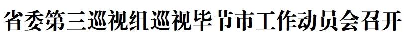 根据省委关于巡视工作统一部署,7月6日,省委第三巡视组巡视毕节市工作动员会召开。会前,省委第三巡视组与省委常委、毕节市委书记吴胜华,市委副书记、市长吴东来见面沟通,提出了相关要求,通报了巡视任务和工作安排。会上,省委第三巡视组组长史芸就即将开展的巡视工作作动员讲话。省委第三巡视组副组长朱利强传达了省委书记、省人大常委会主任徐麟在省委常委会会议上听取十三届省委第四轮巡视工作情况汇报时的讲话精神,副组长李甦宣读了对毕节市巡视的通知。吴胜华主持会议并作表态讲话。市委常委,市人大常委会、市政府、市政协党组领导班子成员,市法院、市检察院党组主要负责同志,省委第三巡视组全体成员出席会议。其他在职副厅级以上领导干部,市纪委监委机关、市委组织部领导班子成员,市委巡察办主任、正县长级巡察专员,市直各部门(单位)主要负责同志,各县(市、区)党政主要负责同志列席会议。