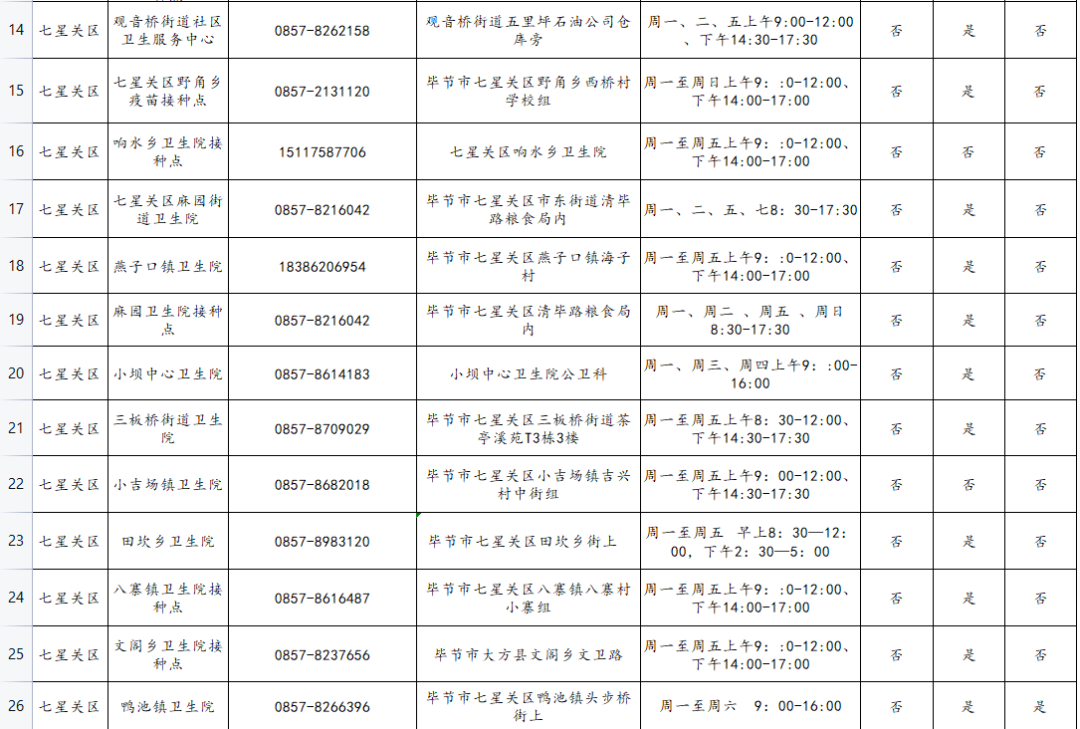 毕节市公布新冠病毒疫苗接种点和接种服务热线!