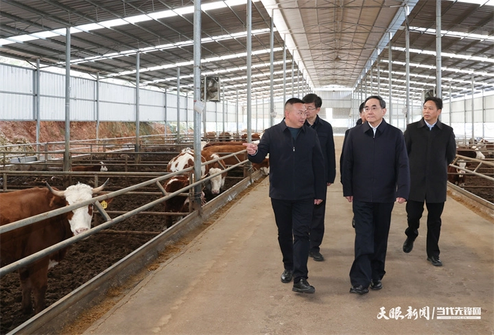 图为徐麟在岑巩县大有镇塔山村集体养殖场考察,了解产业发展带动群众增收等情况。