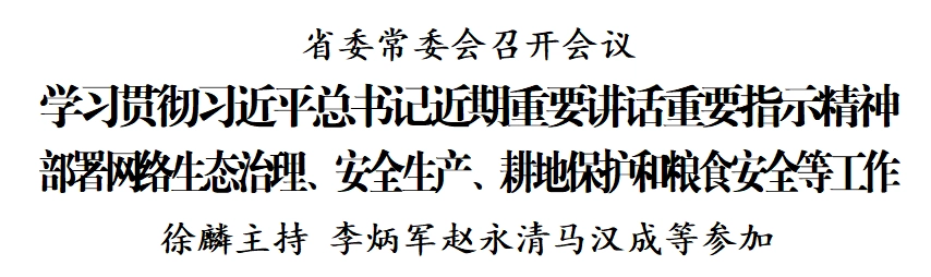 12月5日,省委常委会召开会议,学习贯彻习近平总书记近期重要讲话重要指示精神,部署网络生态治理、安全生产、耕地保护和粮食安全等工作。