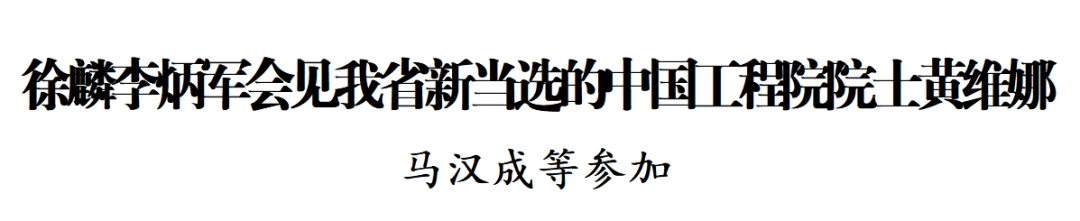 徐麟李炳军会见我省新当选的中国工程院院士黄维娜