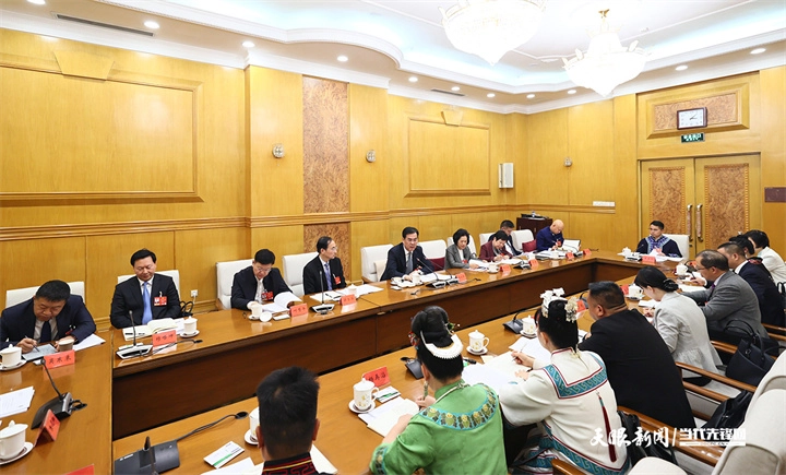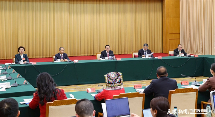3月8日下午,十四届全国人大四次会议贵州代表团举行会议,审议民族团结进步促进法草案。全国人大代表、省委书记、省人大常委会主任徐麟,全国人大代表、省委副书记、省长李炳军,全国人大代表、十四届全国人大常委会委员、全国人大常委会法工委主任沈春耀参加审议。