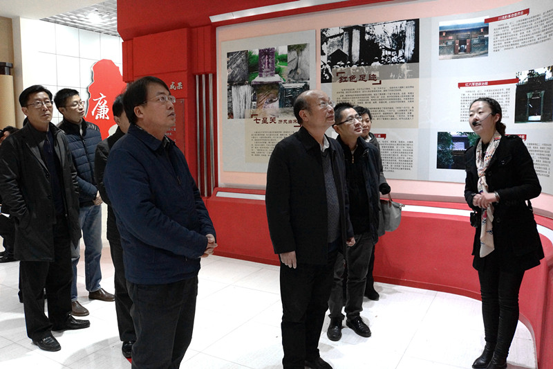 图为李本刚(右四)在滕义(右三)、蒋兴勇(右五)陪同下参观七星关区警示教育基地