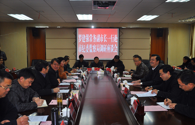 1月29日,市委常委、市政府党组副书记、常务副市长罗建强亲切看望市纪委监察局干部职工,在调研座谈时强调,要认真落实党风廉政建设主体责任,坚决支持纪检监察机关推进“三转”。市委常委、市纪委书记蒋兴勇参加座谈并讲话。