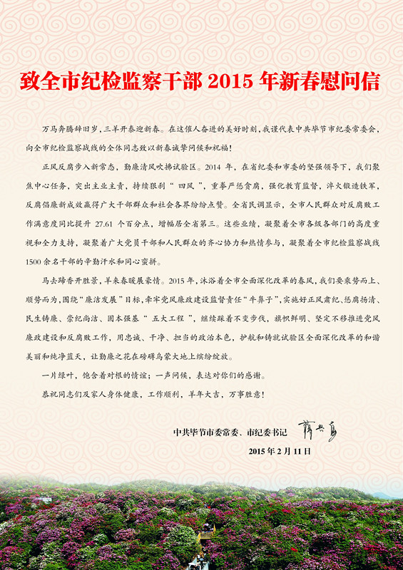 致全市纪检监察干部2015年新春慰问信